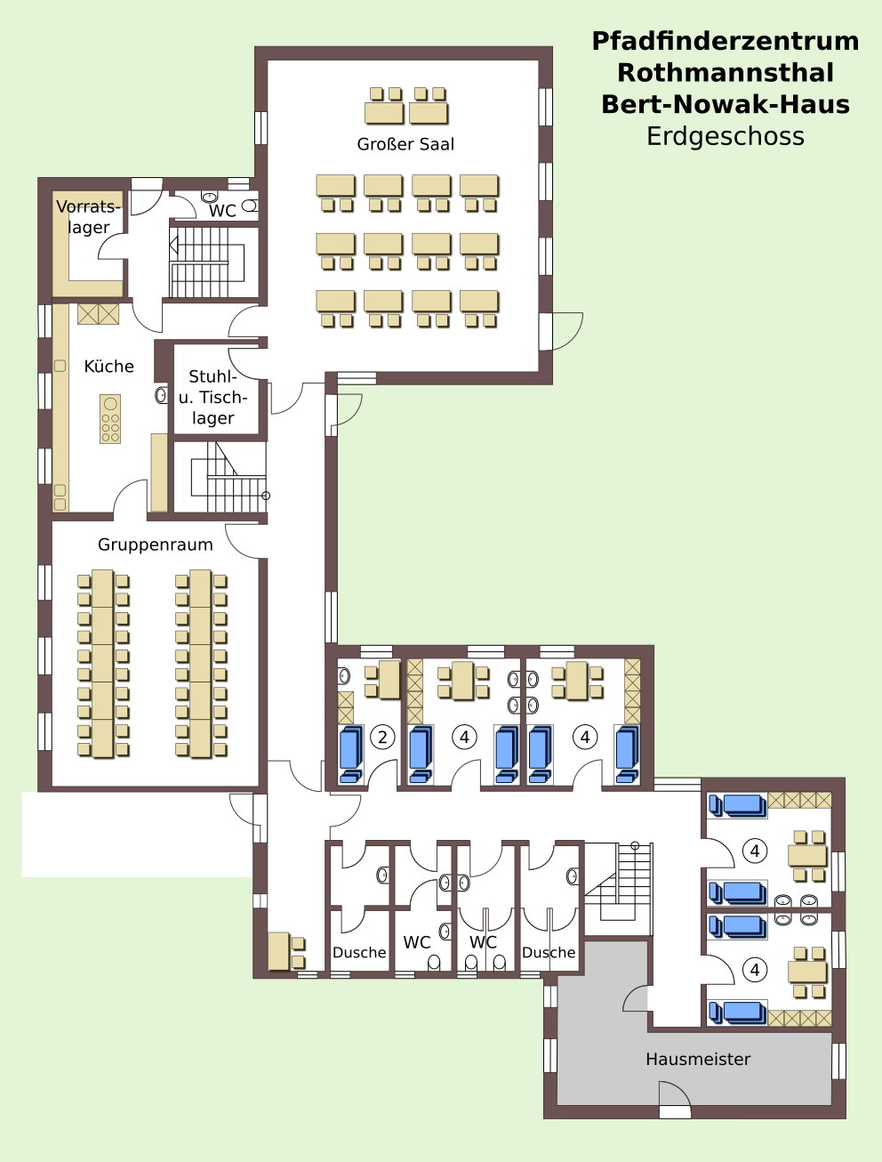 Es besteht die Möglichkeit, das Pfadfinderdorf zusammen mit dem Bert-Nowak-Haus zu mieten. Beachten Sie hierbei bitte die unterschiedlichen Belegungsbedingungen!